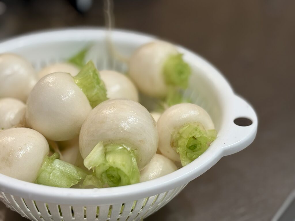 母が退職後の暮らしの張り合いにとお世話になる農家さんから可愛い小さいかぶをたくさんいただきました。