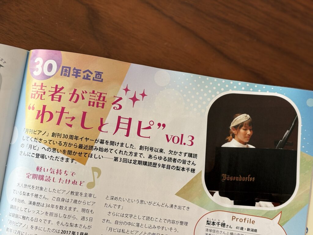 読者の一人として、月刊ピアノ30周年企画コーナーに登場させていただきました。